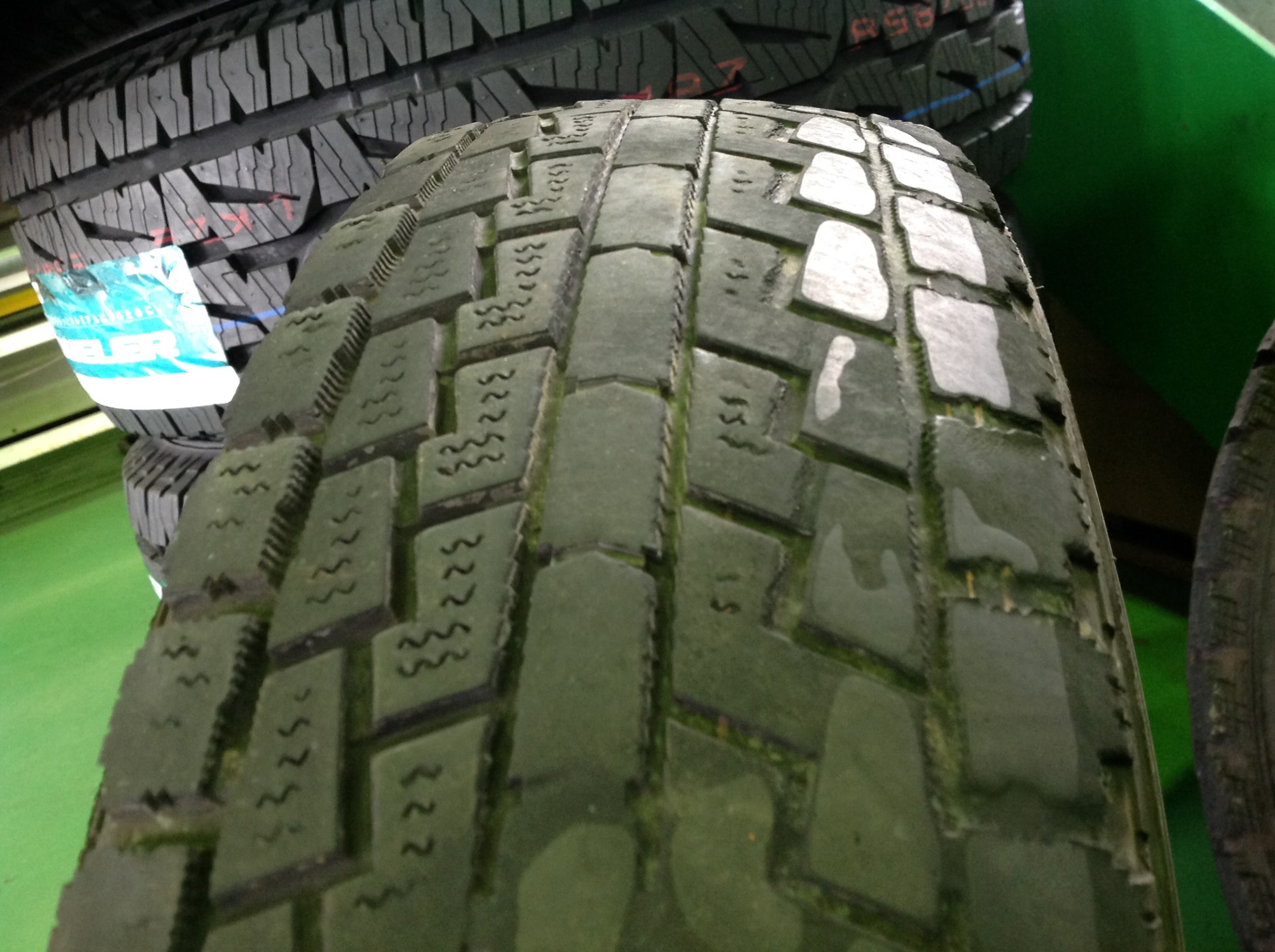 このように、タイヤの内側に比べ外側が異常に減ってしまっています。