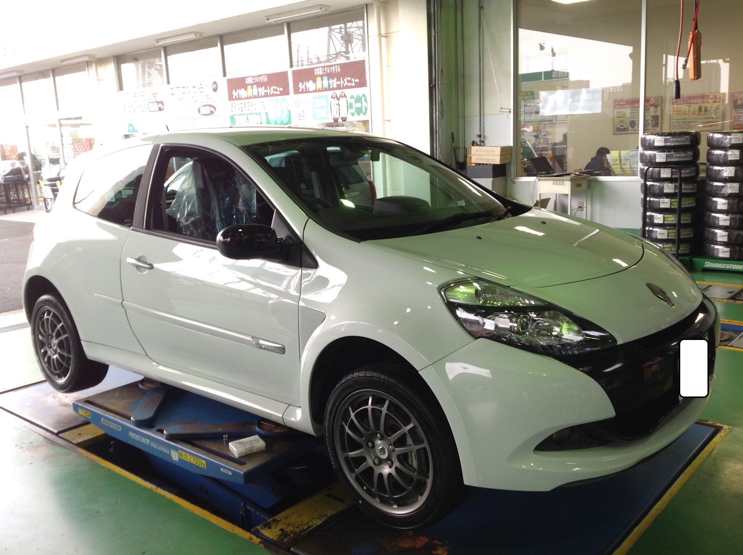 さてルノールーテシアさんがパンク点検でご来店です。なかなか見かけないお車ですが限定車だそうですよ!