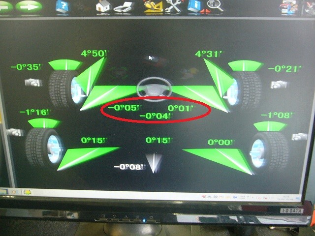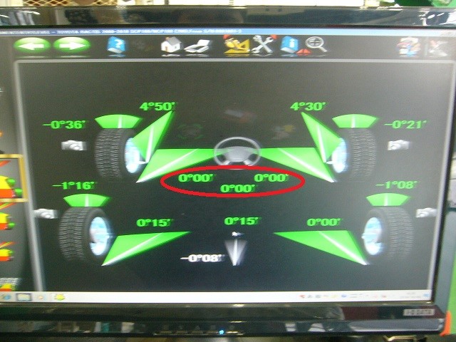 こちらのラクティスのフロントトー基準値が0°00ですので、基準にしっかり変更出来ているのがわかりますね。