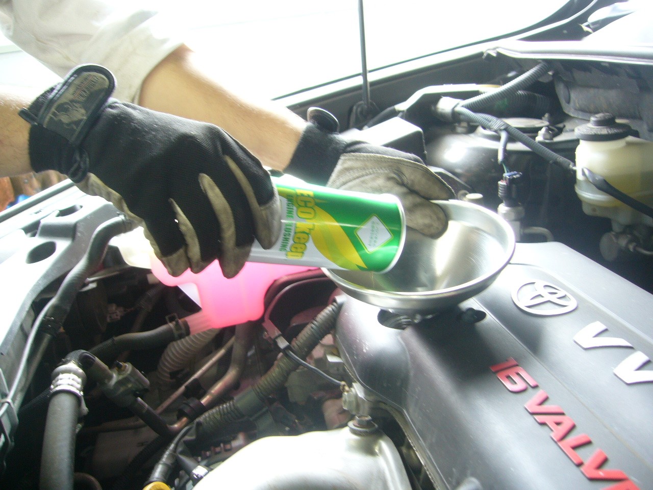 作業の流れは、通常のエンジンオイル交換作業を始める前に、エンジンオイル注入口からフラッシングオイルを注入し、エンジンをかけて、アイドリング状態で10~20分ほど時間を置きます。