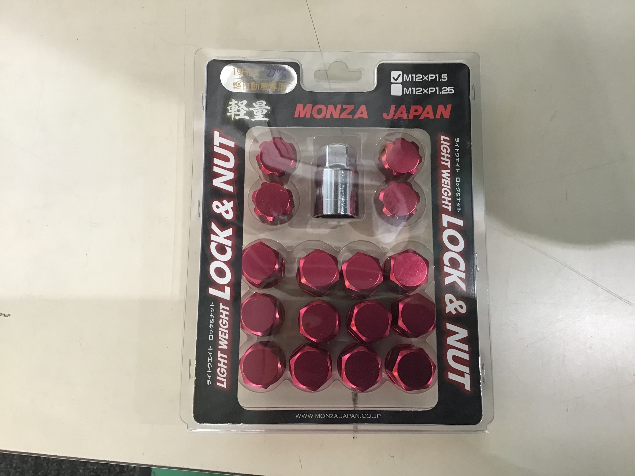 アルミに合わせて、今回は軽量のロックナットセットをレッドで合わせていきます。