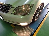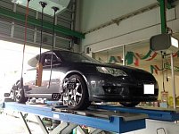 先日行った、レガシィのアライメント作業です。 別のお店にて、アルミホイールを購入・装着されたみたいですが その後、ディーラーにて点検の入庫ができなくなってしまったそうです。 STIのダウンサスで、少しローダウンされていますが、 確かに前のホイールのスポークがちょいとはみ出ている感...