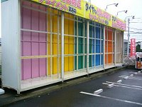 当店の駐車場にたたずむ5面のシャッターラック(略してシャラック)。 外展示のタイヤを雨や雪などから身をもって守り、長い年月がんばっている頼もしい奴。 汚れもひどくなってきたので、 『思い切ってイロ塗っちゃいました~~~っ!!』 あとは乾くのを待ってタイヤをキレイにならべなおせば出来...