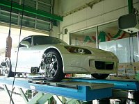 本日、ホンダのスポーツカーS2000のアライメント作業がありました。 カッコいいですね~ また、いつかはスポーツカーに戻りたいです。。。 さすが、ピュアスポーツな車は、アライメント調整10箇所ございます。 最近は、調整箇所が少ない車が多いですので、楽しいですね☆ 若いスタッフに負け...
