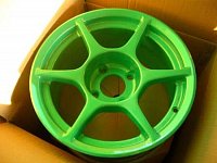 私事ですが、今月で三十路になります。 体力低下しないように、ジョギング、筋トレ頑張ります。 体育会系、西嶋スタッフにはまだまだ負けません!! 写真は、関係ないのですがすごい色のホイールだったのでパシャリ。 パールたっぷりの蛍光グリーンに近い色です! ブラックのAE86に履かせるそう...