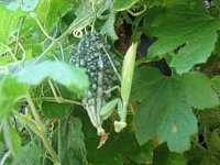 我が家のグリーンカーテンのゴーヤの実に ‘カマキリ’がいました。。。 あんな苦い実をたべるのでしょうか?? しばらく、にらめっこ。o@(^-^)@oしていましたが、 相手にしてもらえなかった・゚・(ノД`;)・゚・ので、 そっとしておくことに・・・ ちょっとだけ、ホンワカしたひと時でした