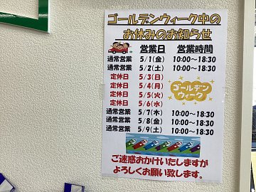 記事一覧 ゴールデンウィークのお休みのお知らせ いつも閲覧いただきありがとうございます タイヤ館安曇です 本日は、ゴールデンウィークのお休みのお知らせです 5月3日から5月6日までお休みとさせて頂きます ご迷惑おかけいたしますがよろしくお願い致します 2026年4月21日 ポスト