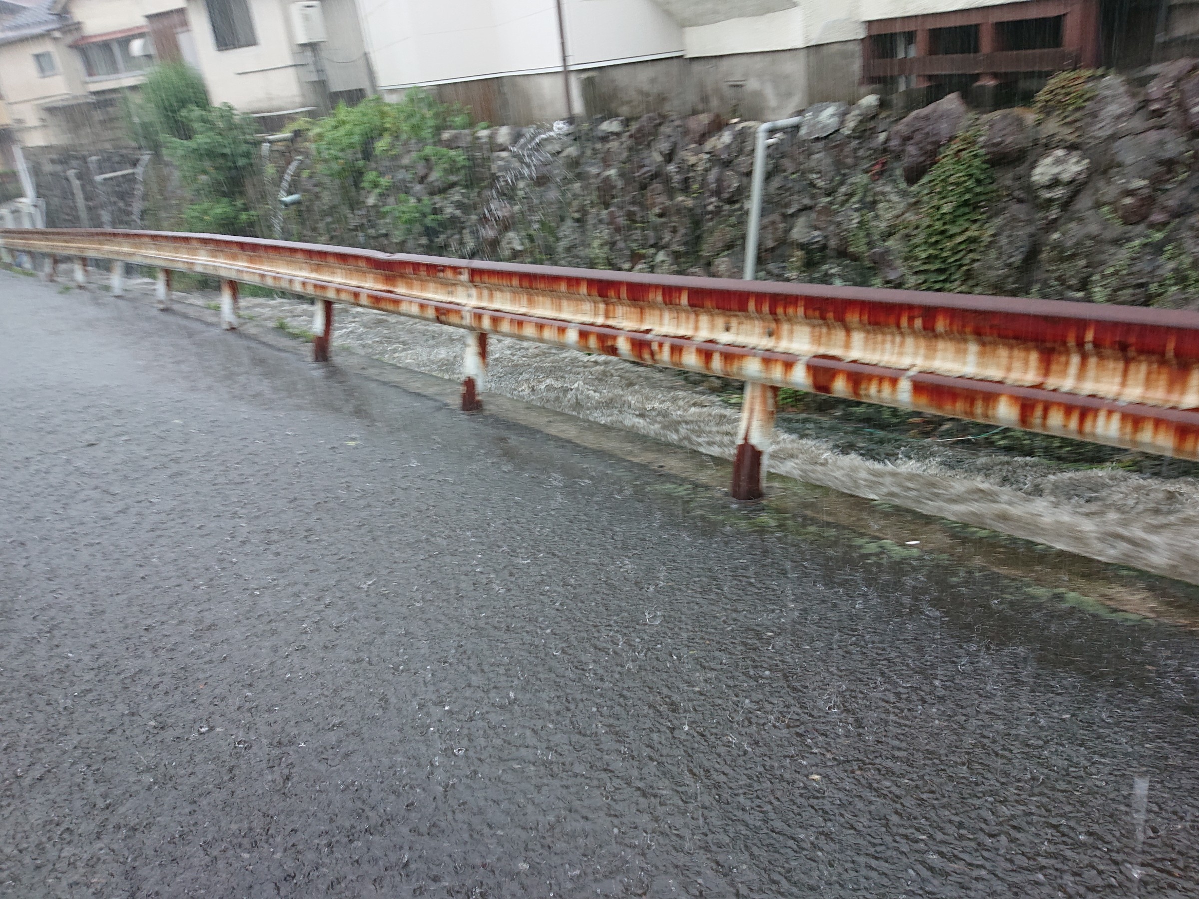 バケツの水をひっくり返したような雨で、一気に水路の水かさが増えました。