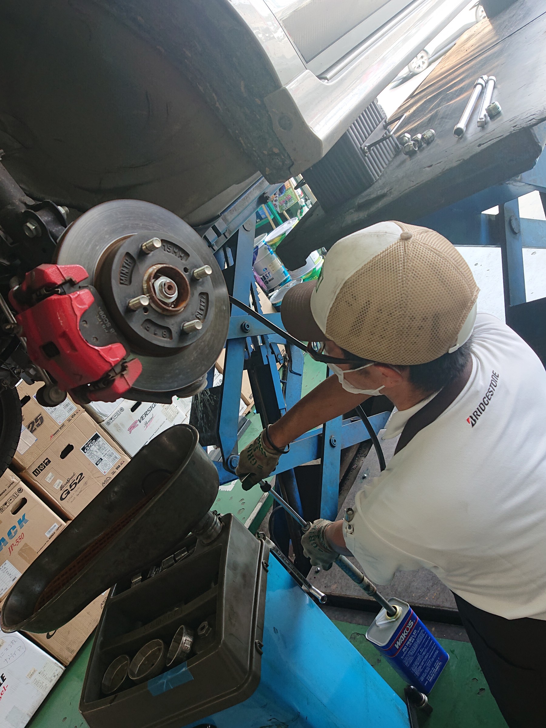 左フロントのタイヤホイールを外した方が作業しやすそうです!
