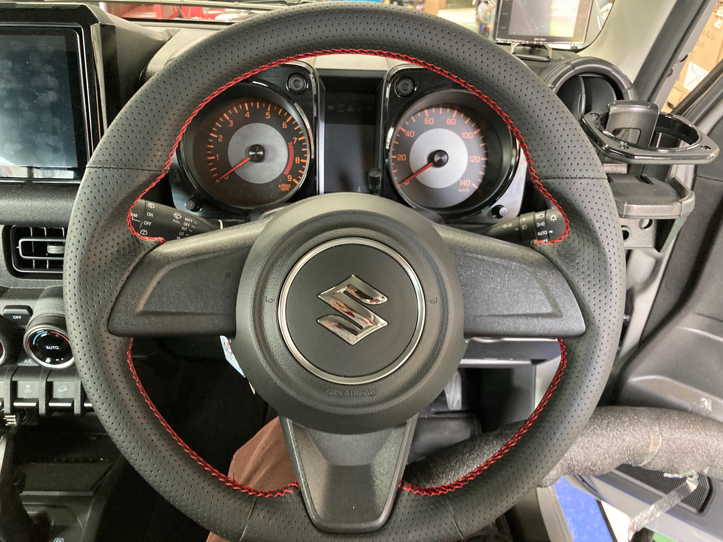 今回お取り付けするのはショウワガレージさんの本革巻きステアリング、レッドステッチです!