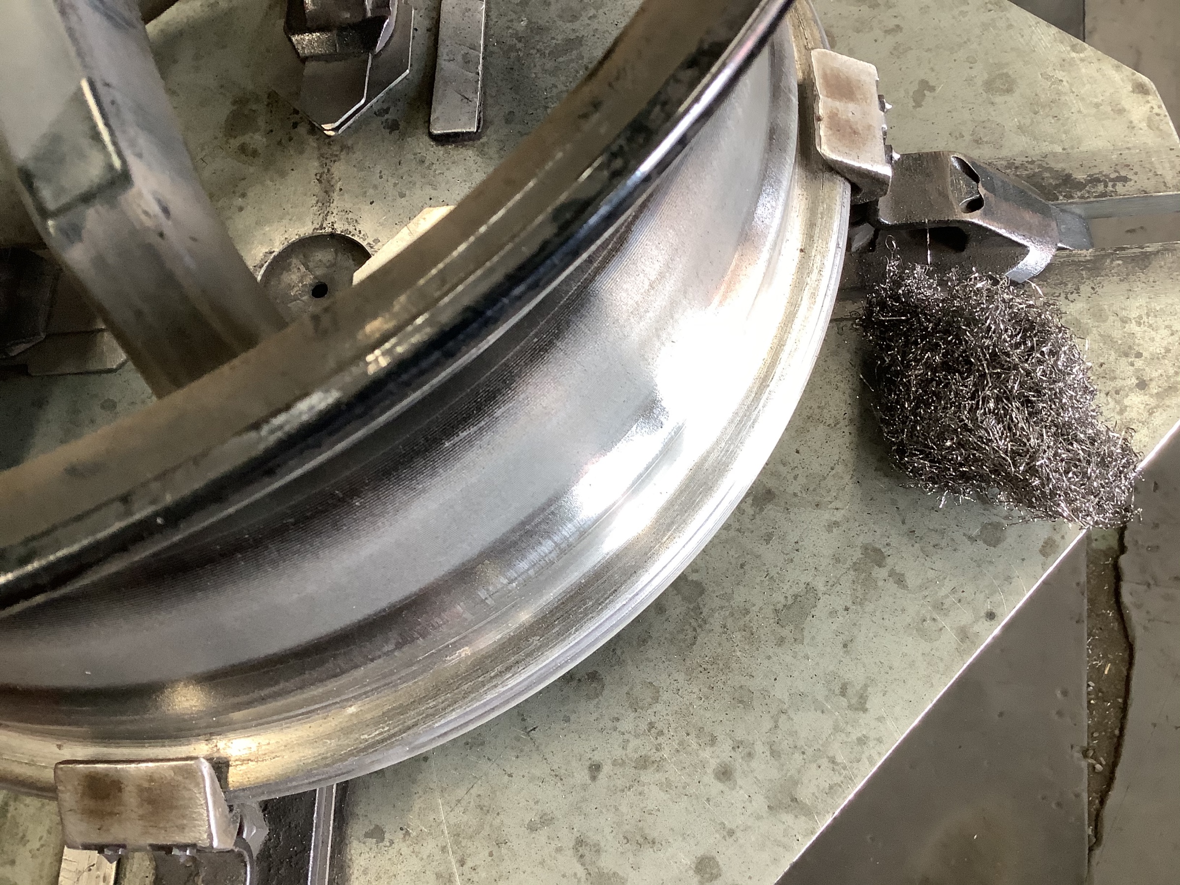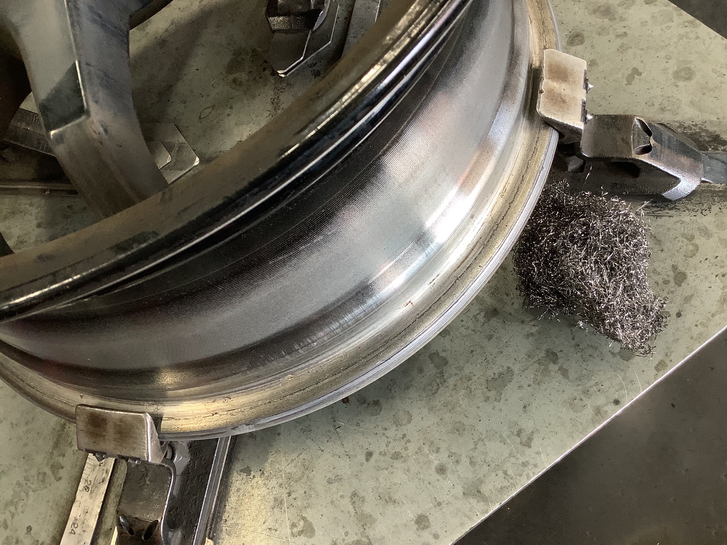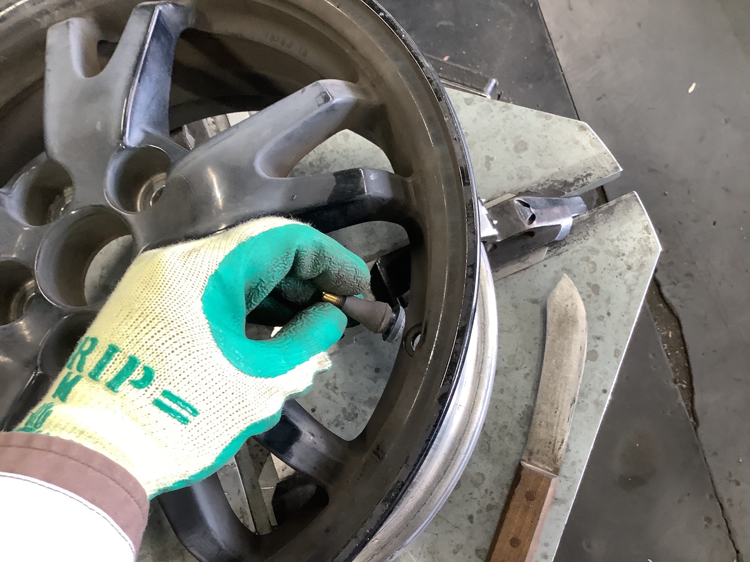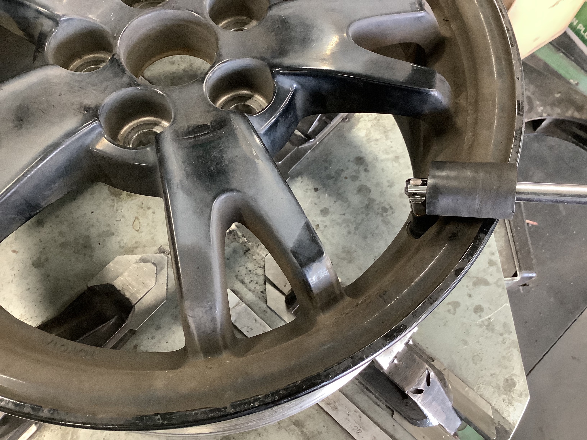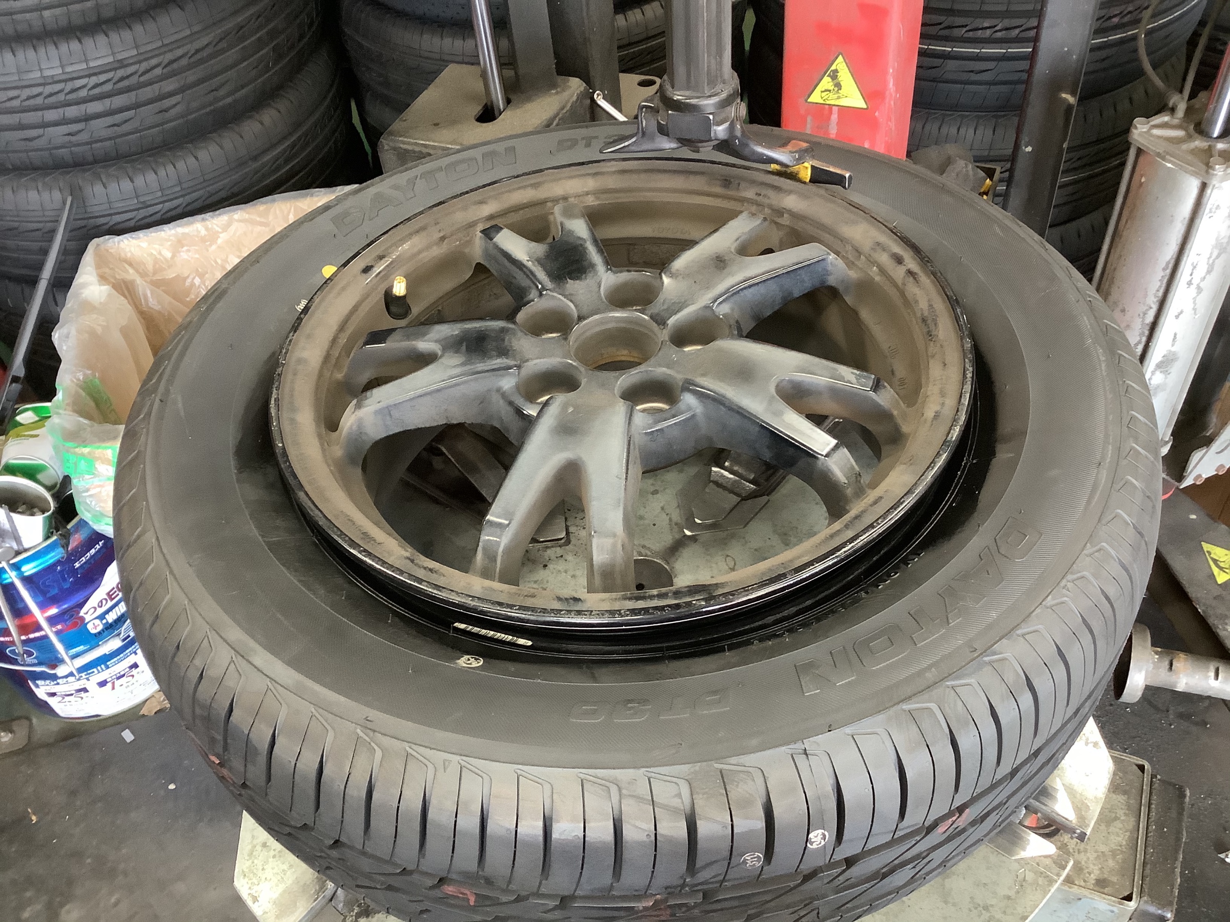 ビードクリームをタイヤとホイールのリム部分に塗って新品タイヤを組み込み、