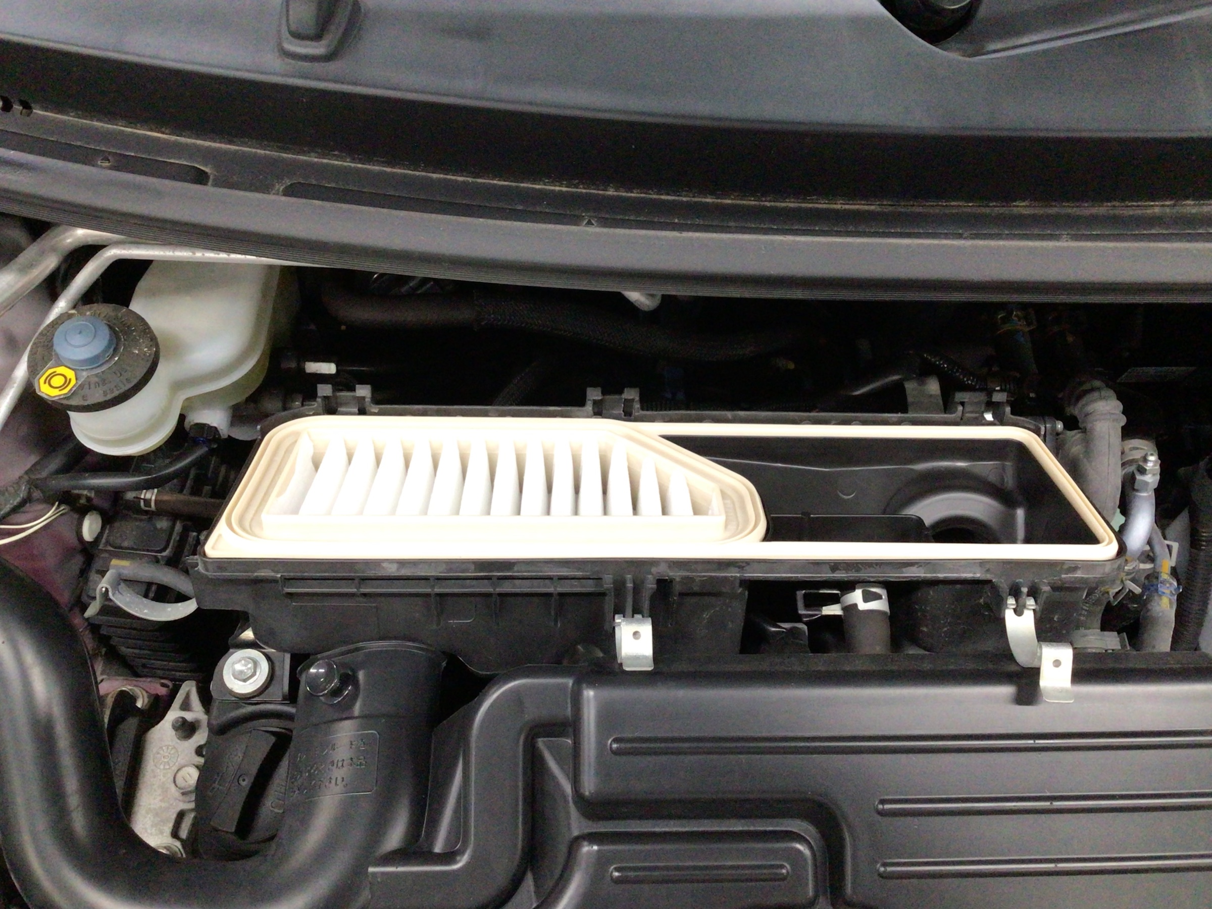 まずはエンジン上部にあるエアーエレメントを交換します