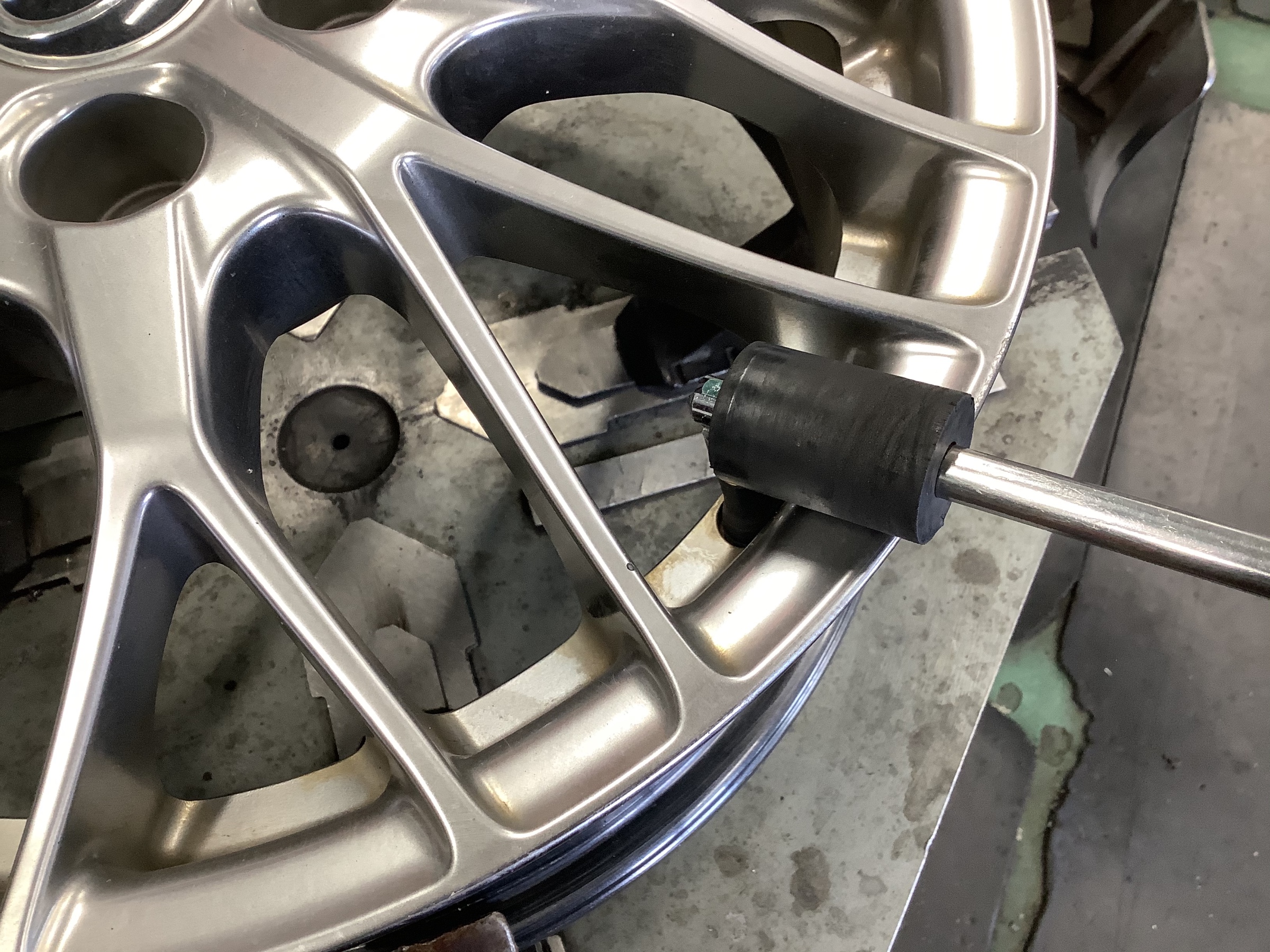 ビードクリームをタイヤとホイールのリム部分に塗って新品タイヤを組み込み、