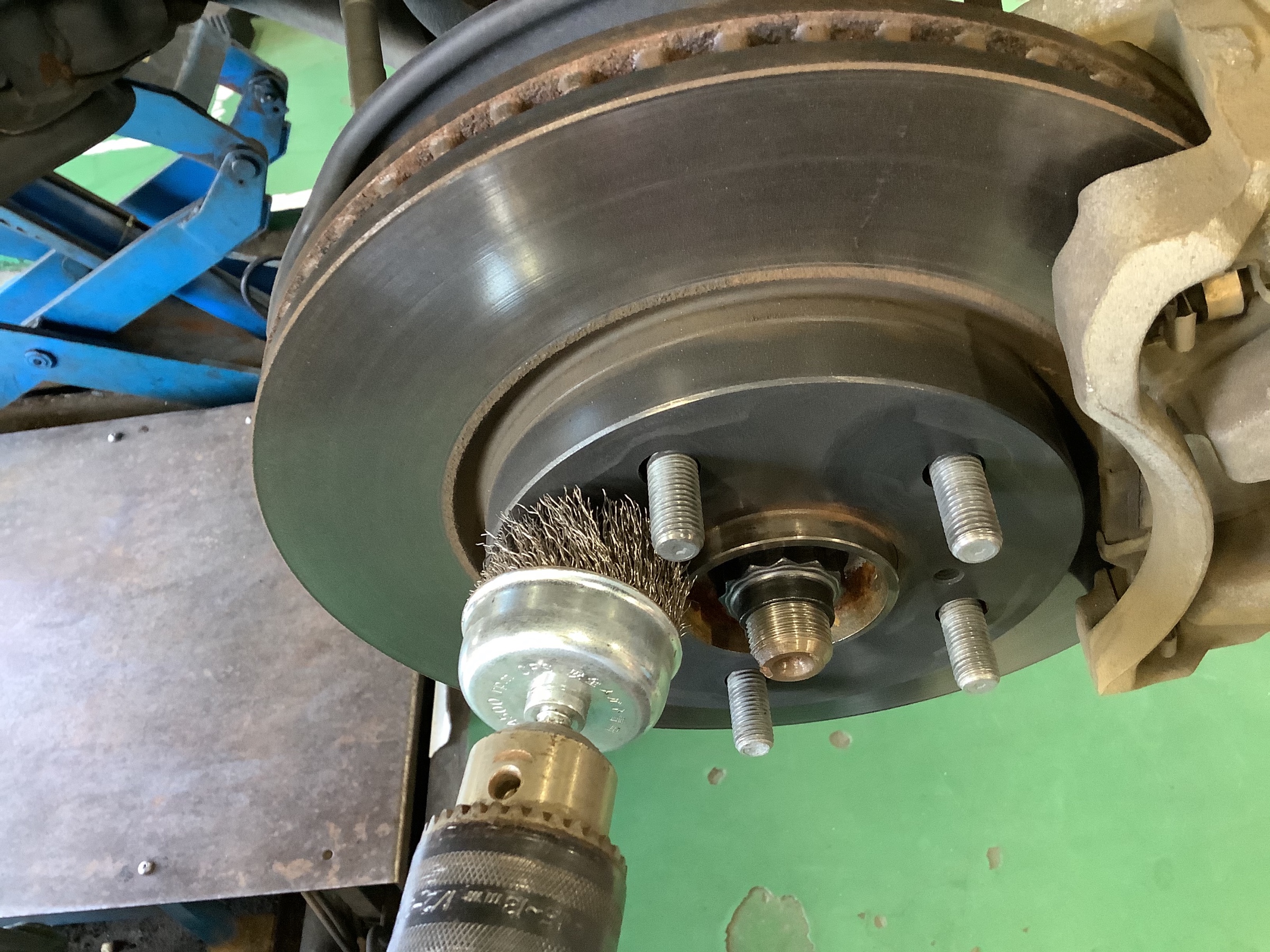 サビをワイヤーブラシで磨き落として、防錆剤を塗布します。