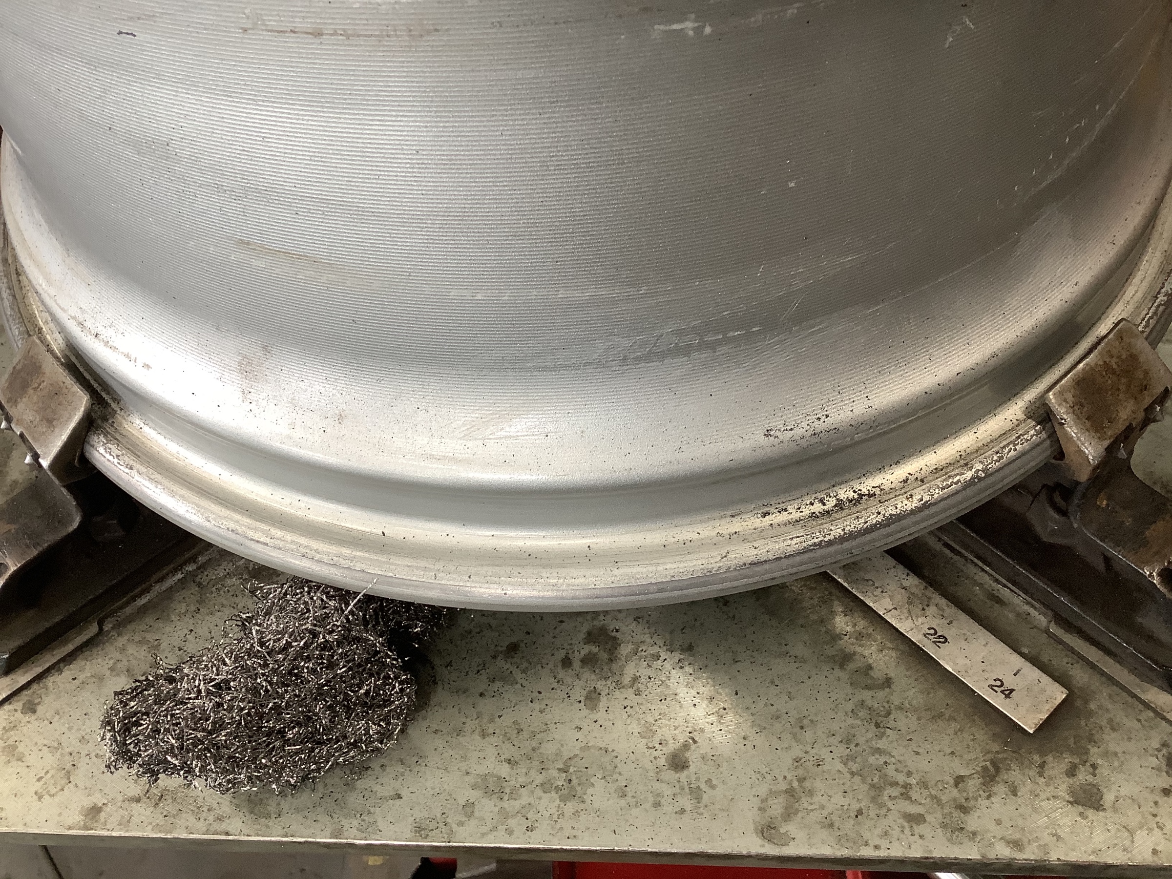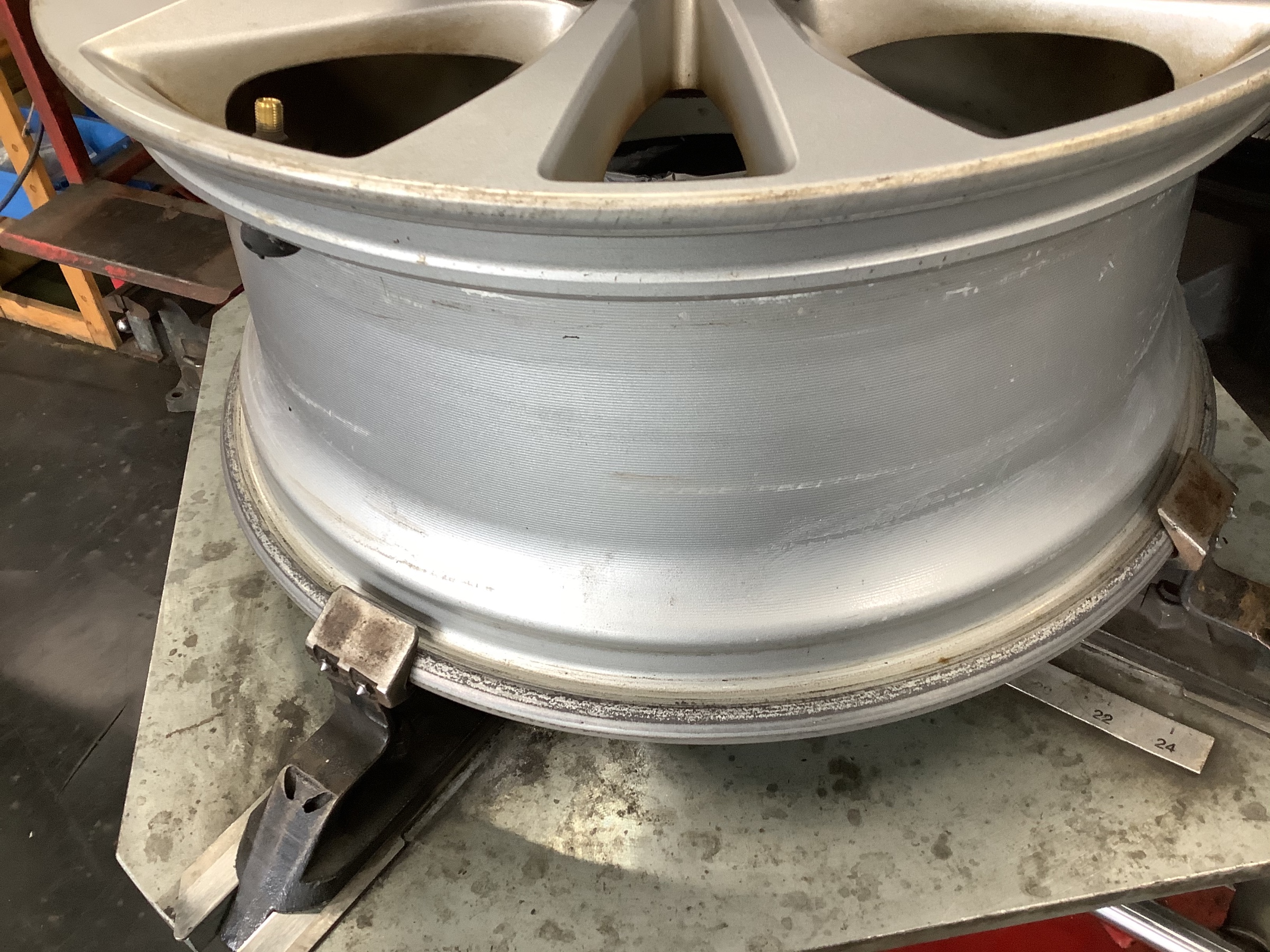 ゴムの古くなったチューブレスバルブを取り、リムの汚れを磨いてキレイにします。