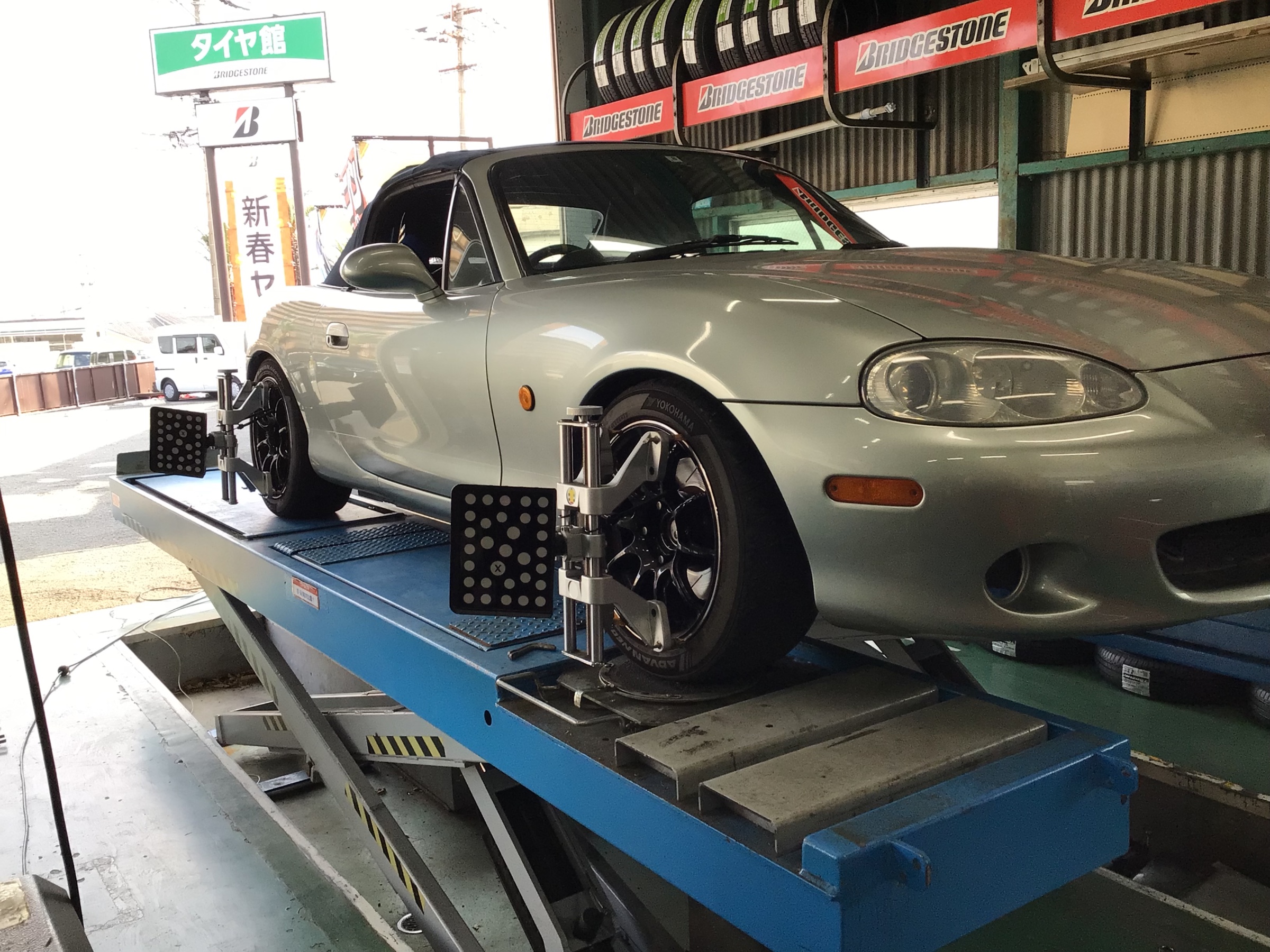 マツダの名車、ロードスターの四輪トータルアライメント調整を実施させて頂きました☆