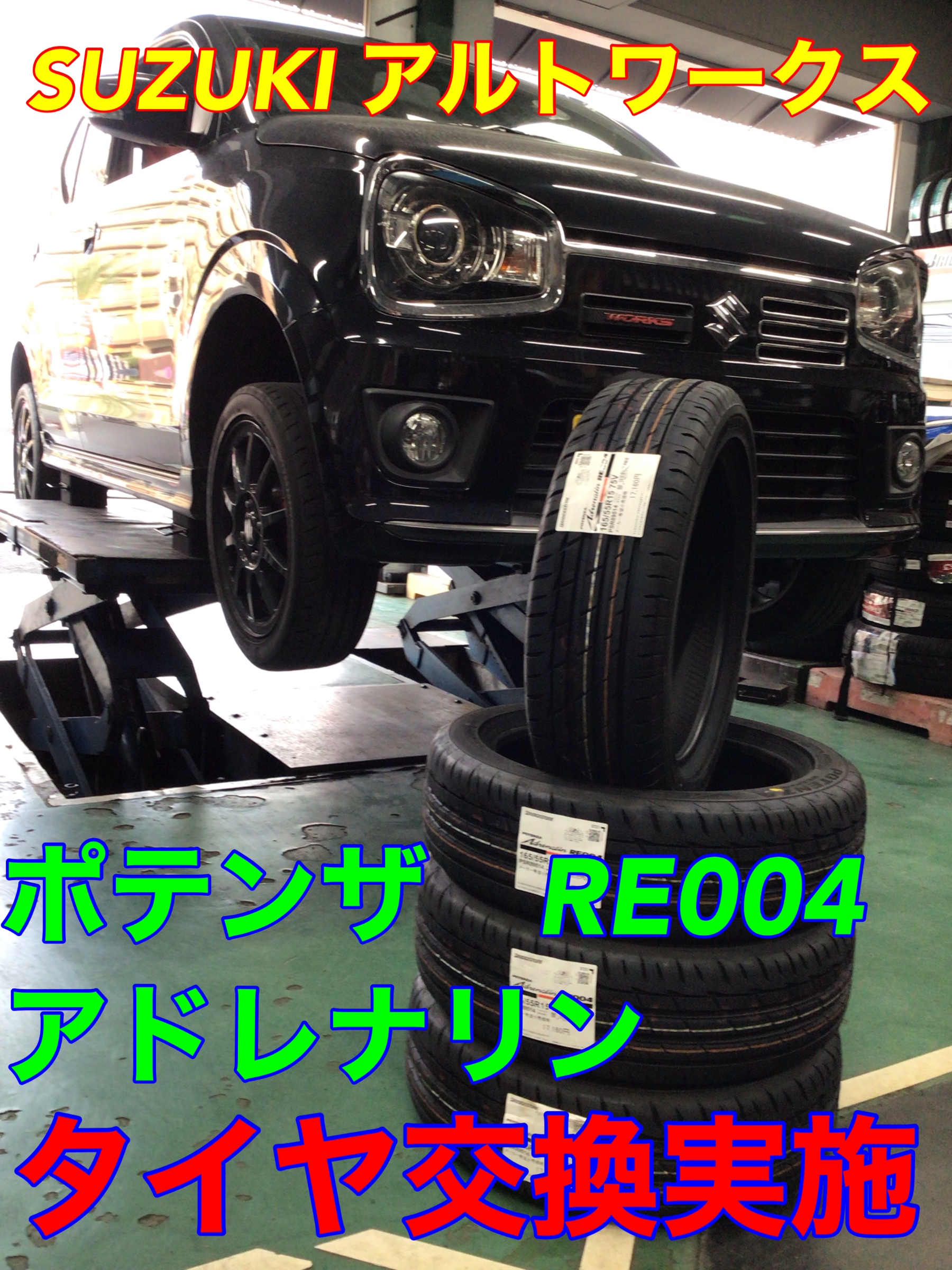 アルトワークスにポテンザ アドレナリン RE004の取り付けを実施させて頂きました。