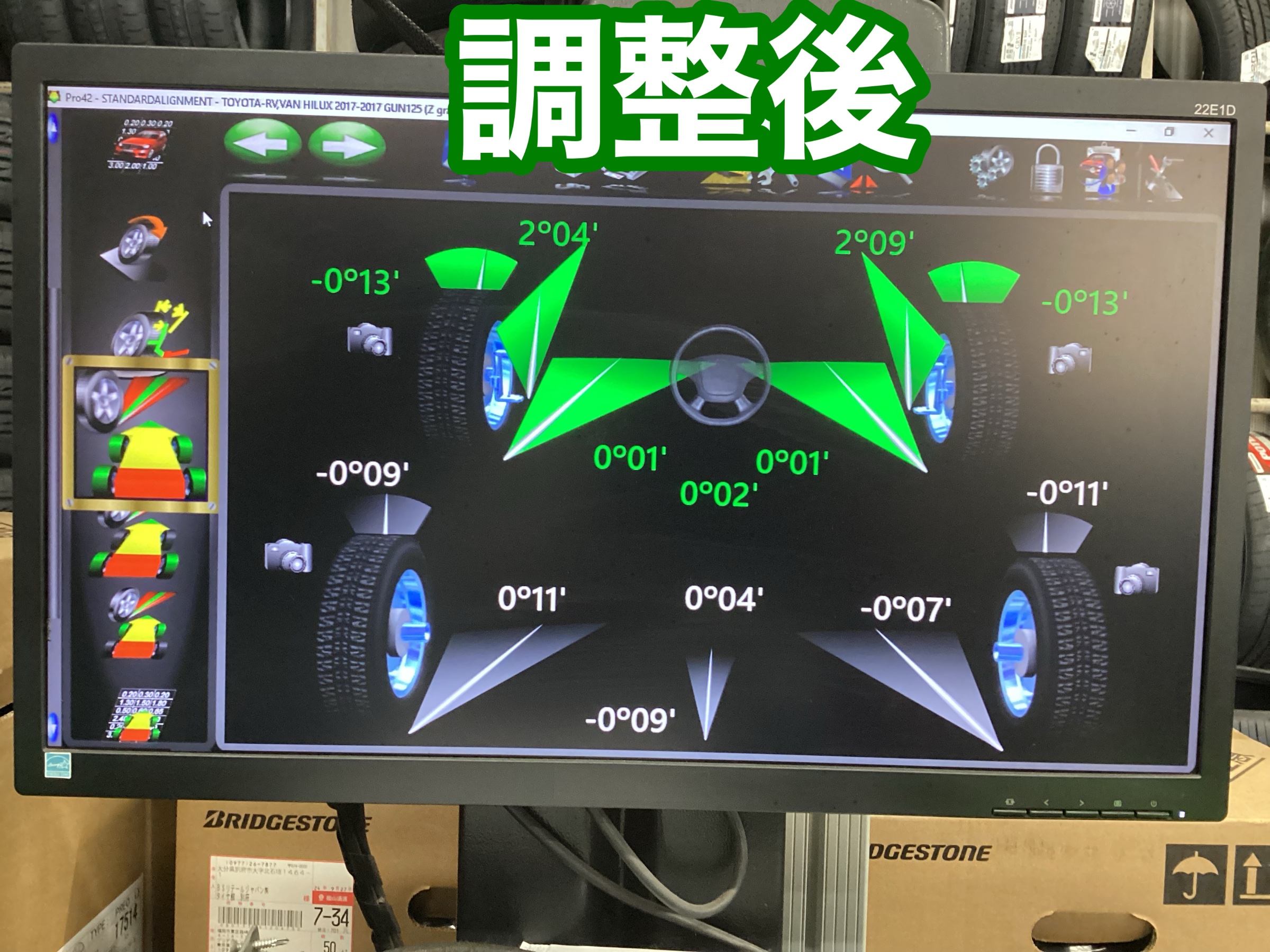 トヨタ ハイラックス タイヤ交換&四輪トータルアライメント調整実施☆