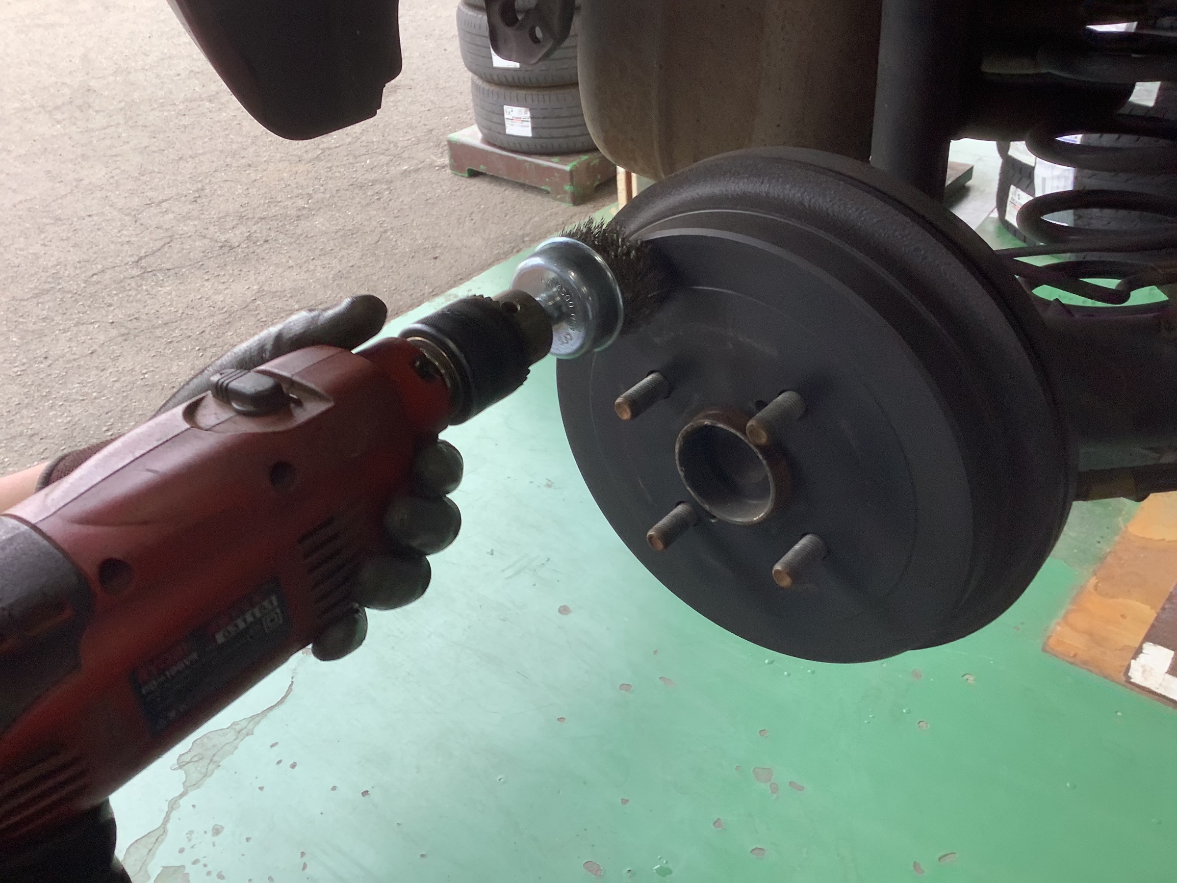 サビをワイヤーブラシで磨き落として、防錆剤を塗布します。