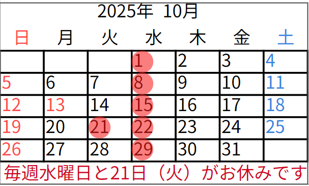 10月の店休日は