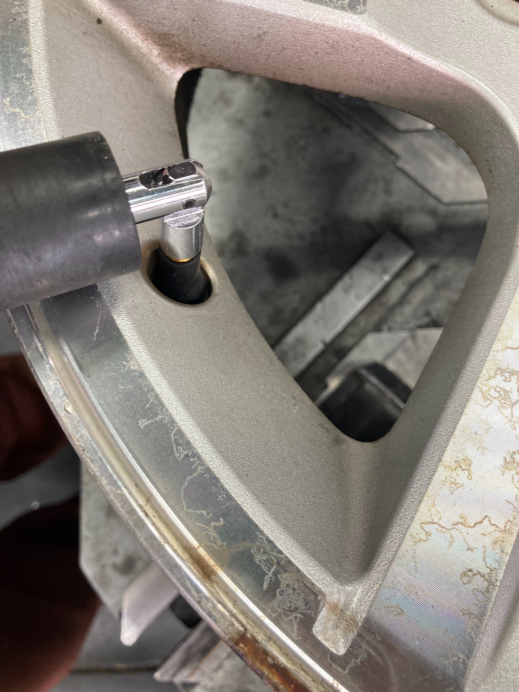 リムのゴムかすを綺麗にしてゴムバルブを交換します!トルクレンチで増し締めした後にタイヤワックス、ホイールクリーニングで作業完了♪ これで安心して走れますね(^^)