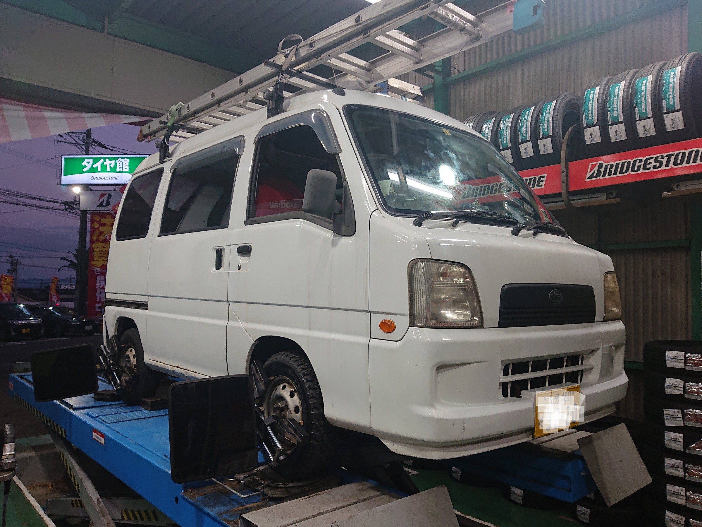 またまたサンバー アライメント調整実施⭐ ポスト 2019年12月25日 こんにちは!!!! タイヤ館 別府店の矢野です!!!! 昨日に引き続き、サンバーのアライメント調整を実施させていただきました♪ タイヤの内減りがひどいですネ オーナー様もサンバーに強い拘りがある方らしく、 実動車2台、部品取り車2台の計4台も所有されておられるそうです!! 担当:矢野