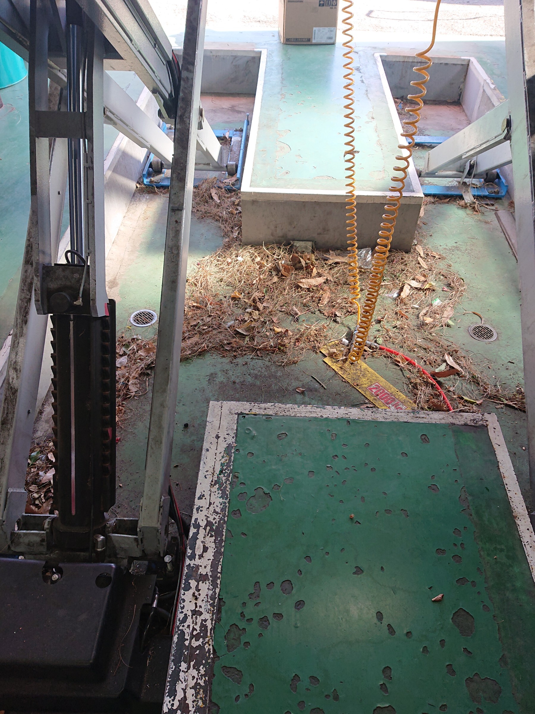 8日の暴風でピットのリフト下に大量のゴミが吹き込んでいました。