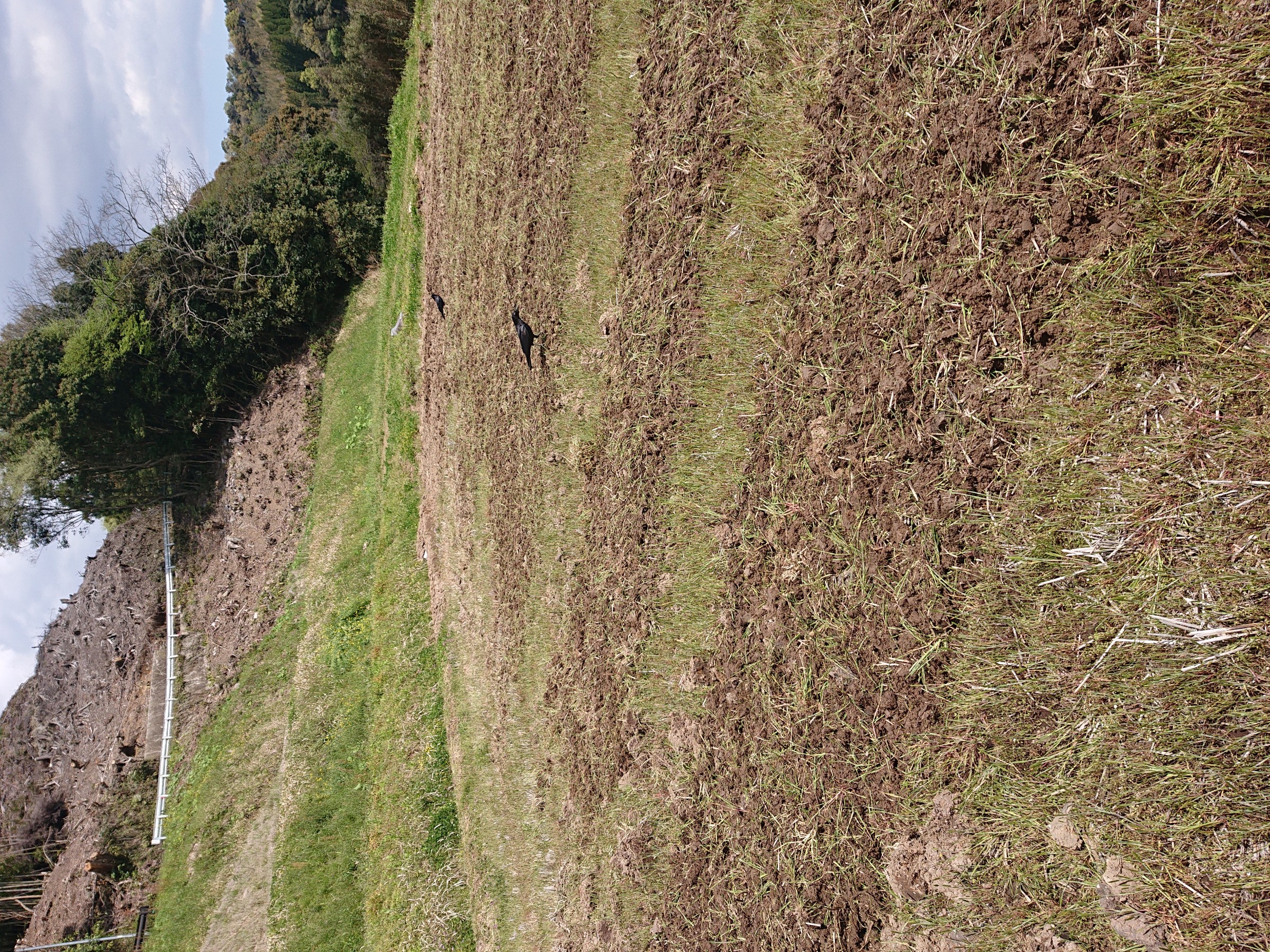 今回も頭の良いカラスが、ロータリーに巻き込まれた昆虫やカエルの死骸を食べにきました。