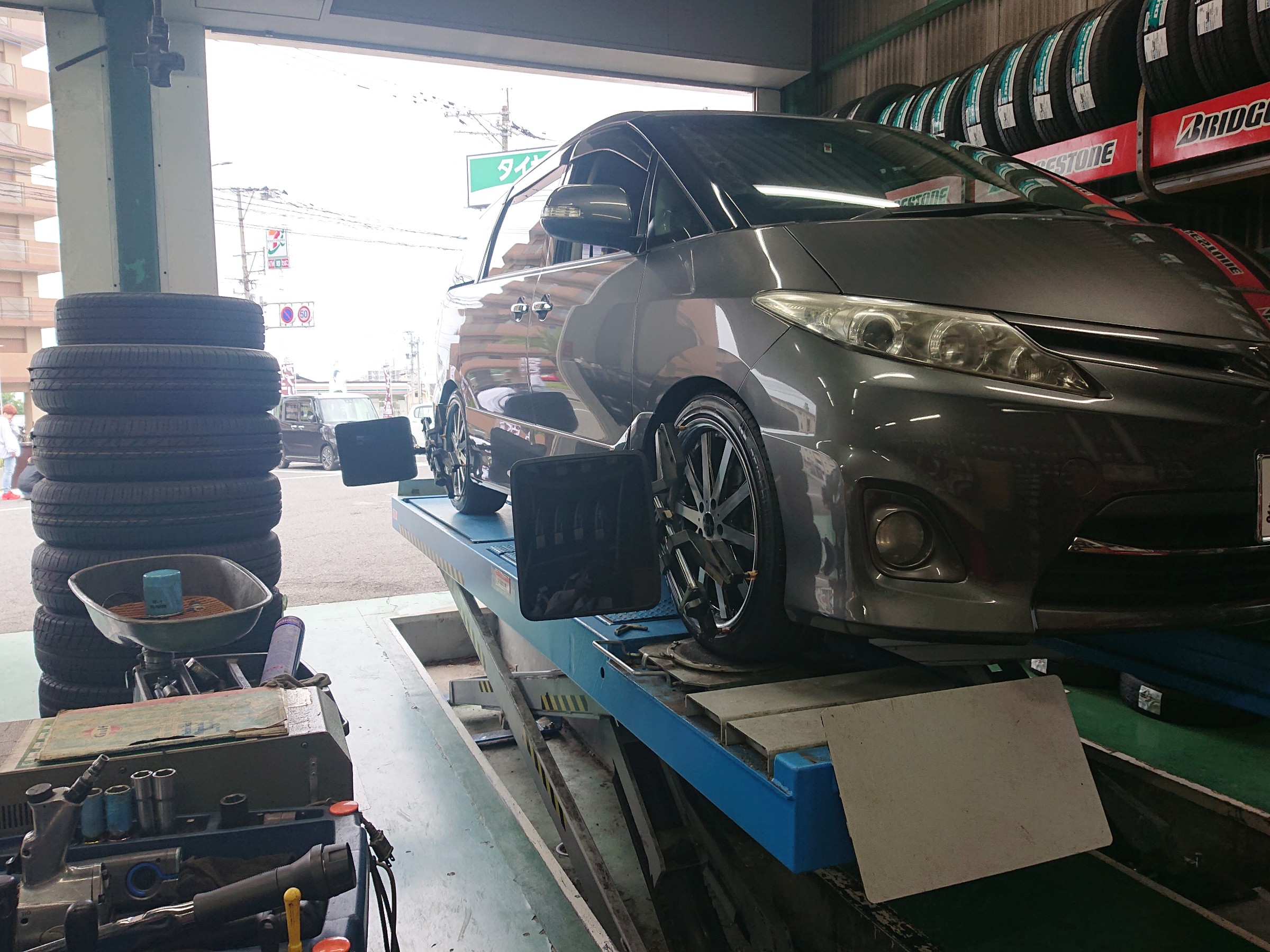 ACR50Wのエスティマのタイヤ交換とアライメント調整を実施させていただきました⭐