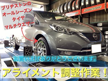 日産ノート タイヤ交換&四輪トータルアライメント調整実施⭐︎
