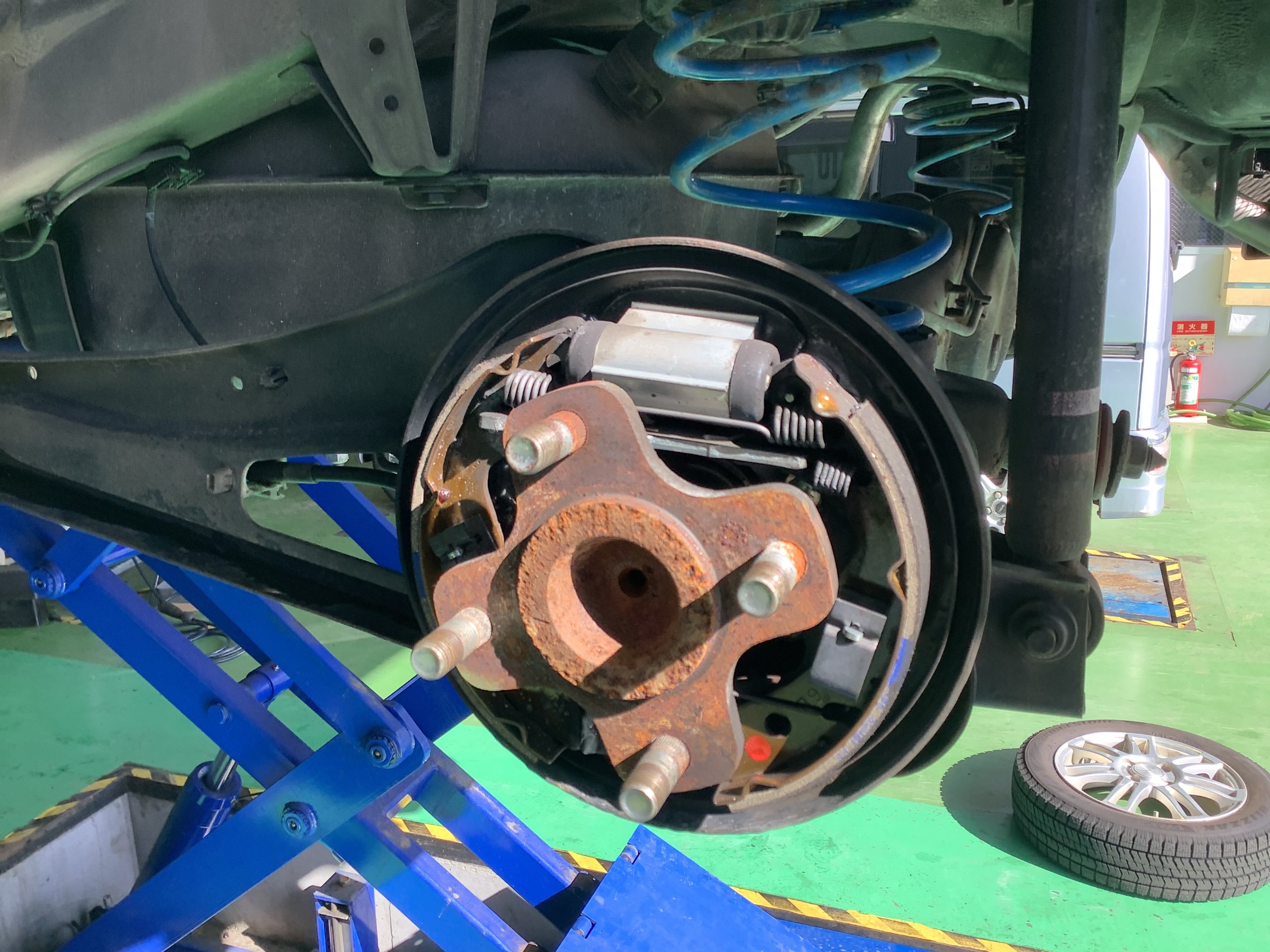 リアのドラムブレーキもしっかり分解・清掃、次の車検まで安心してお乗り頂けるよう努めます。