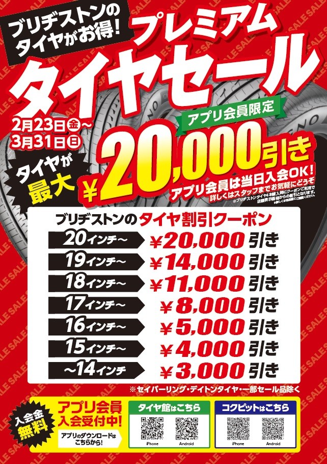〇新品タイヤ4本ご購入でタイヤが最大20,000円(税込)引きのタイヤクーポン!