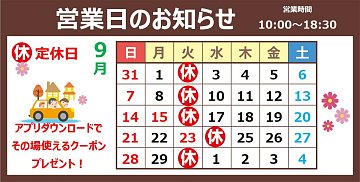 いつも当サイトをご覧いただきありがとうございます 通常は火曜日をお休みとさせて頂いておりますが 今週は変則で本日9/23日(火)を営業、明日9/24日(水)がお休みとなります ご来店の際はお間違いのないようお願いいたします 「スタッドレスタイヤ早期大商談会」開催中 早いもので季節は秋、冬支...