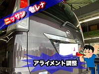 本日はニッサン セレナのアライメント調整していきます セレナと言えば、トヨタのノア.ヴォクシーと並ぶ ミニバンを代表する一台ですね 人が多く乗る車は、走行距離が多くなる場合があります しっかりアライメントをして、タイヤの編摩耗を 抑えてタイヤを長く使いましょう! いつも通りセッティン...