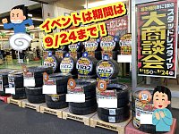 本日9/24はスタッドレスタイヤ大商談会 最終日 皆さん スタッドレスタイヤの準備は済んでますか? まだ早い…と思っていると冬は、あっという間に来てしまいます 雪が降ってから慌てるより、今のうちから準備をして イザ!て時に備えましょう しかも ハズレ無しの景品つき! 何が当たるかはくじ引き...