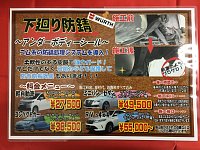 こんにちは!高橋です! 本日はおクルマの下廻りの防錆コーティングのご案内♪ 一言に防錆といっても持ちや強度によって作業所要日数も変わればお値段も変わってきます! そんな中、本日は1番がっちりタイプなものをご紹介☆彡 その名は「ウルト」です! ゴム系の柔軟性のある皮膜で車の下回りを強力...