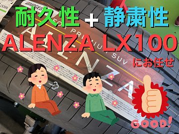 新品タイヤ交換作業を承りました ご成約誠にありがとうございました 今回装着した【ALENZA LX100】は SUV専用設計による耐久性と静粛性を兼ね備えたタイヤです 騒音エネルギー低減率が従来比22%低減※、摩耗寿命は従来比5%向上※ ※詳しくはブリヂストンタイヤ公式ページへ 快適性をお求めなら【ALEN...