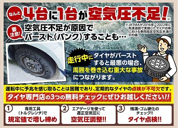 新品タイヤ交換+アライメント作業をご成約頂きました ご利用誠にありがとうございました 季節は「秋」、暑さも落ち着いてお出かけしやすくなりましたね(*'▽') お出かけ前に空気圧やタイヤの摩耗具合など点検の機会があれば 当店へぜひお越しください 夏タイヤまだまだございます 店頭は冬タイヤメ...