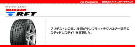 BMWなどのランフラットタイヤ標準車のオーナーの皆様へ 朗報です!夏はランフラットなのに、スタッドレスは普通のタイヤ。 突然のパンクに慌てないで済みます!! ブリヂストンのブリザックRFT!! ブリザックRFTは、空気圧がゼロになっても走行可能な 「ランフラットテクノロジー採用タイヤ」 ラン...