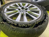 レッカーにて入庫のお客様、 高速道路でバーストしたそうです。 完全にバラバラになっていて原因が特定できないですが 他の無事な3本を見るとどれも全体的にヒビが・・・ おそらく全体的なヒビに 雨水による内部劣化 なんらかで落ち込んだ空気圧と 高速走行 上記条件がハマりバーストしたかと判断...