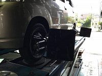 こんにちは。 d(・∀・)b 今日はMRワゴンのアライメント調整を行いました。 調整箇所は前側のトー(人で表現すると真上から見た【つま先の向きの角度】)の 2箇所調整です。 ここを調整することでハンドルのズレ・編摩耗(タイヤの走行面の不均等な減り方)が 改善し、まっすぐ走ってタイヤも均...