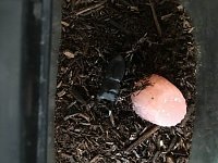 昨日お店周りの雑草取りしてたら、なんと小さいけどクワガタ捕まえました。 虫カゴに入れて飼育してます。