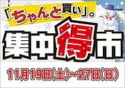 今週の土曜日(19日)から冬の集中得市が始まります。 冬の集中得市中に冬タイヤを購入されたお客様には色々特典がついてきます。 雪タイヤの組み替・履き替えのお客様が増えてきてます。 12月に入ると作業の順番待ちでお時間がかかりますので、冬の集中得市が始まるこの時期に冬タイヤの購入又は履き...