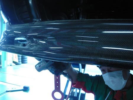 フロントリップスポイラ―の取り付けです。FRP製の物は大体、削ったりして