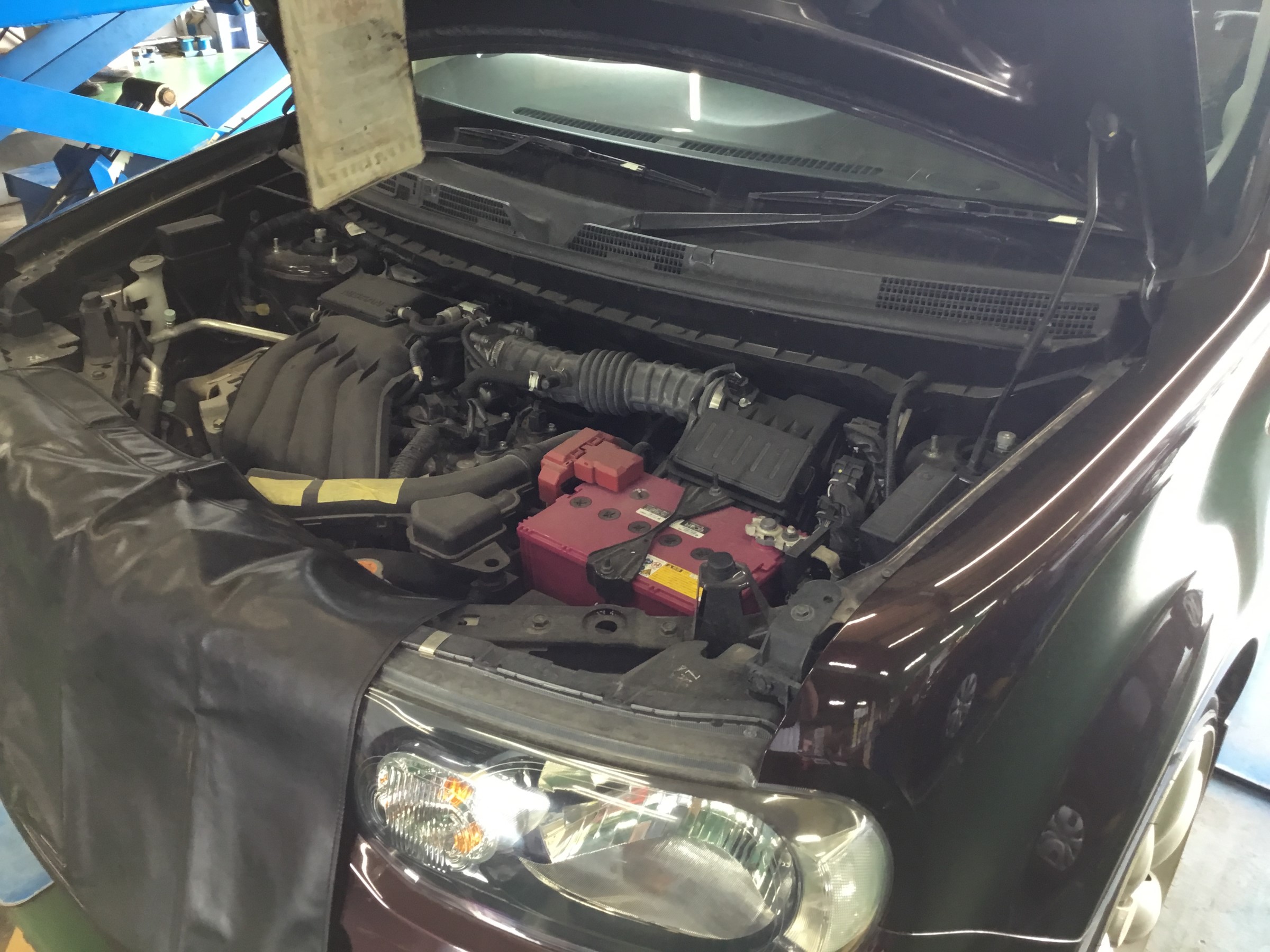 オイル交換でお越しのキューブですオイルはクロスエコ0W20を使用