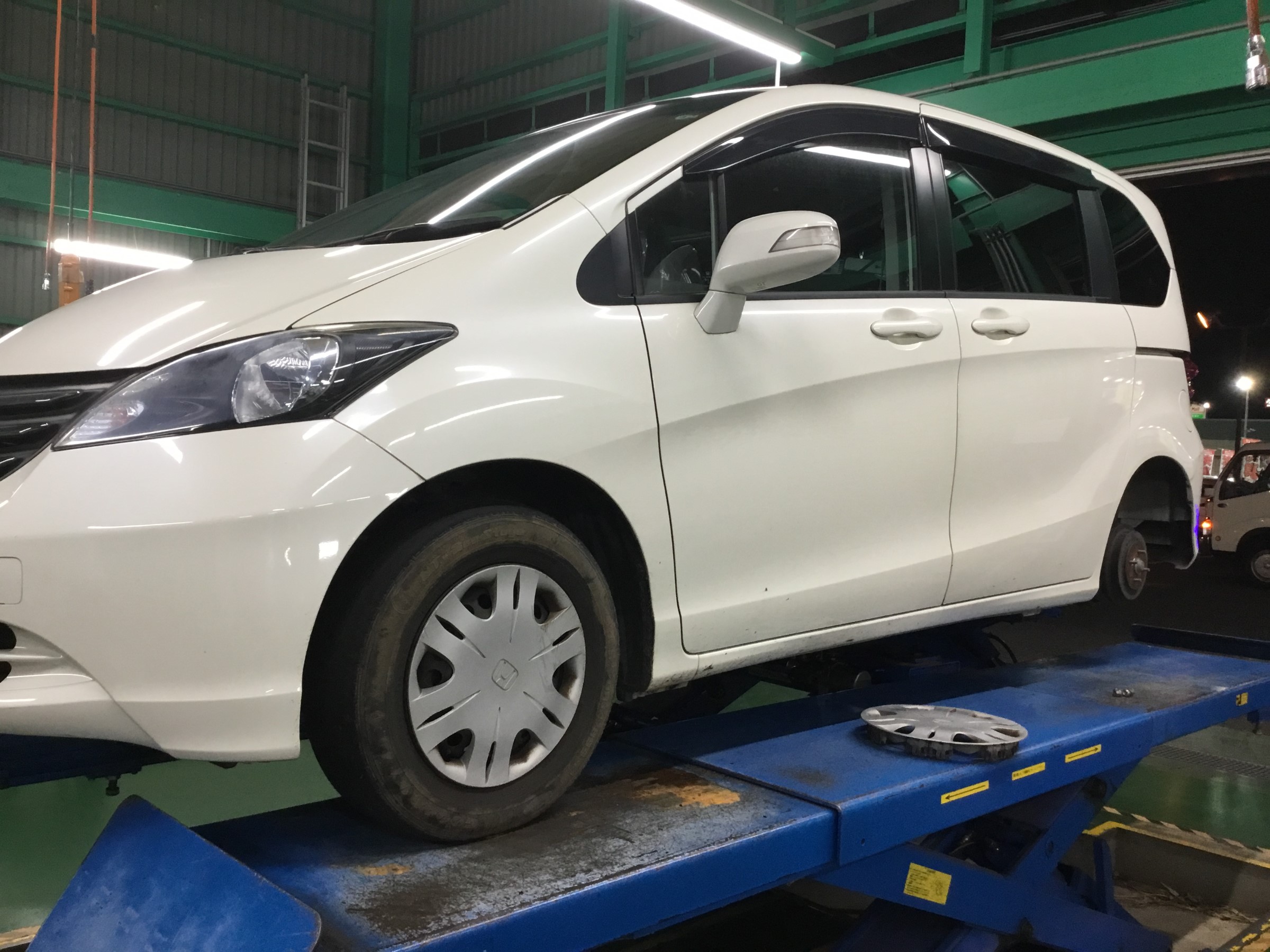 左リアのパンクでお越しのお客様になります、お車はフィットです。