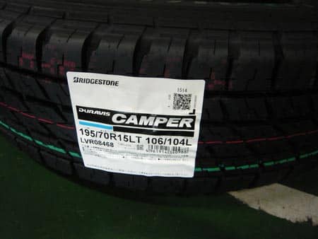 本日はブリヂストンのキャンピングカー専用タイヤ、キャンパーを取り付けさせていただきましたので、ご紹介いたします!!