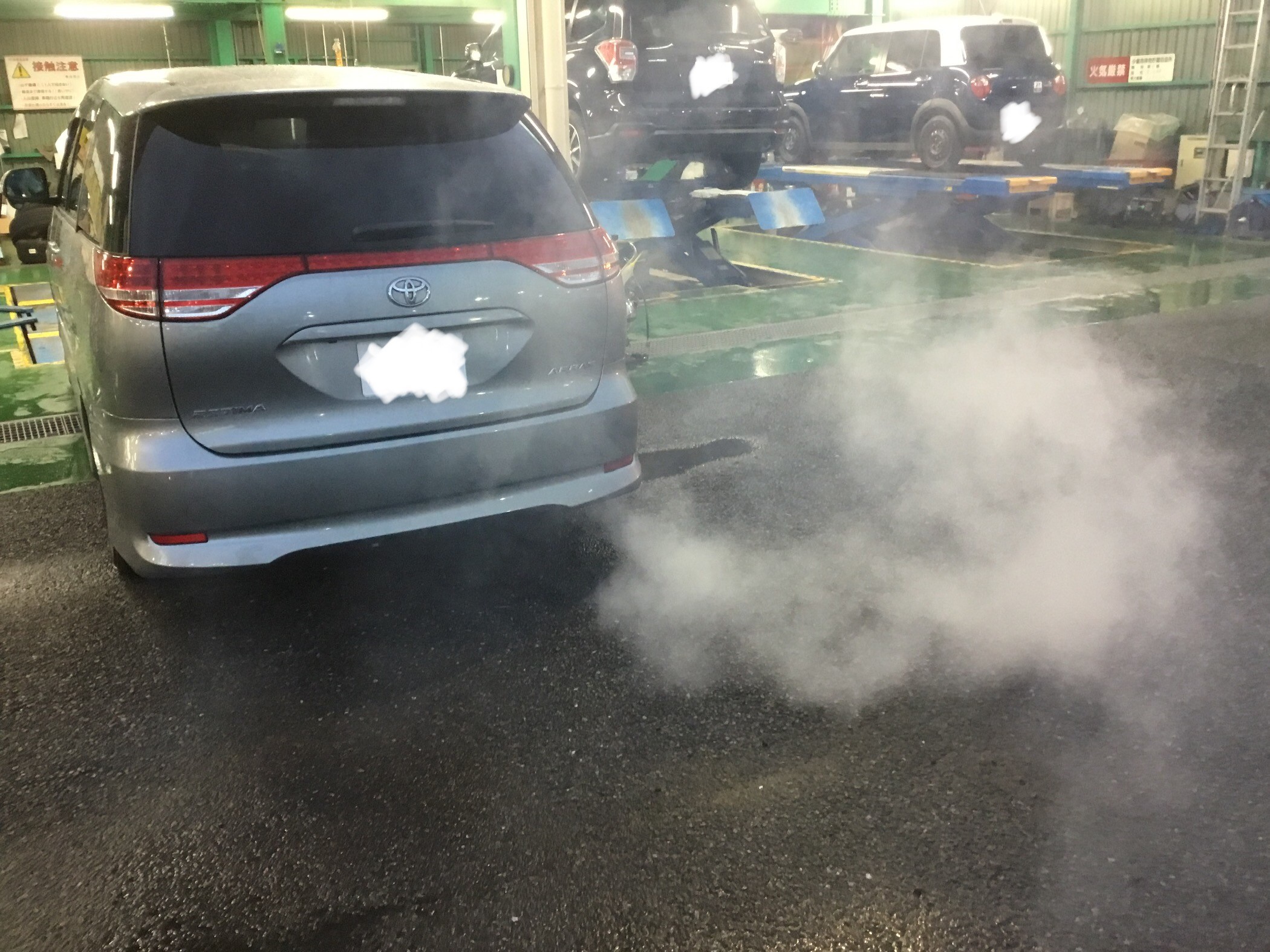施工後の白煙や臭いもお車により、出る場合とほぼ出ない場合もございますが、