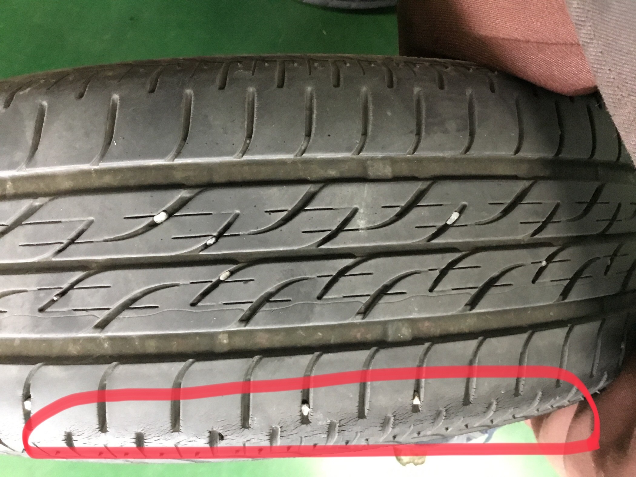交換前のタイヤの残り溝は3mm以下でした。