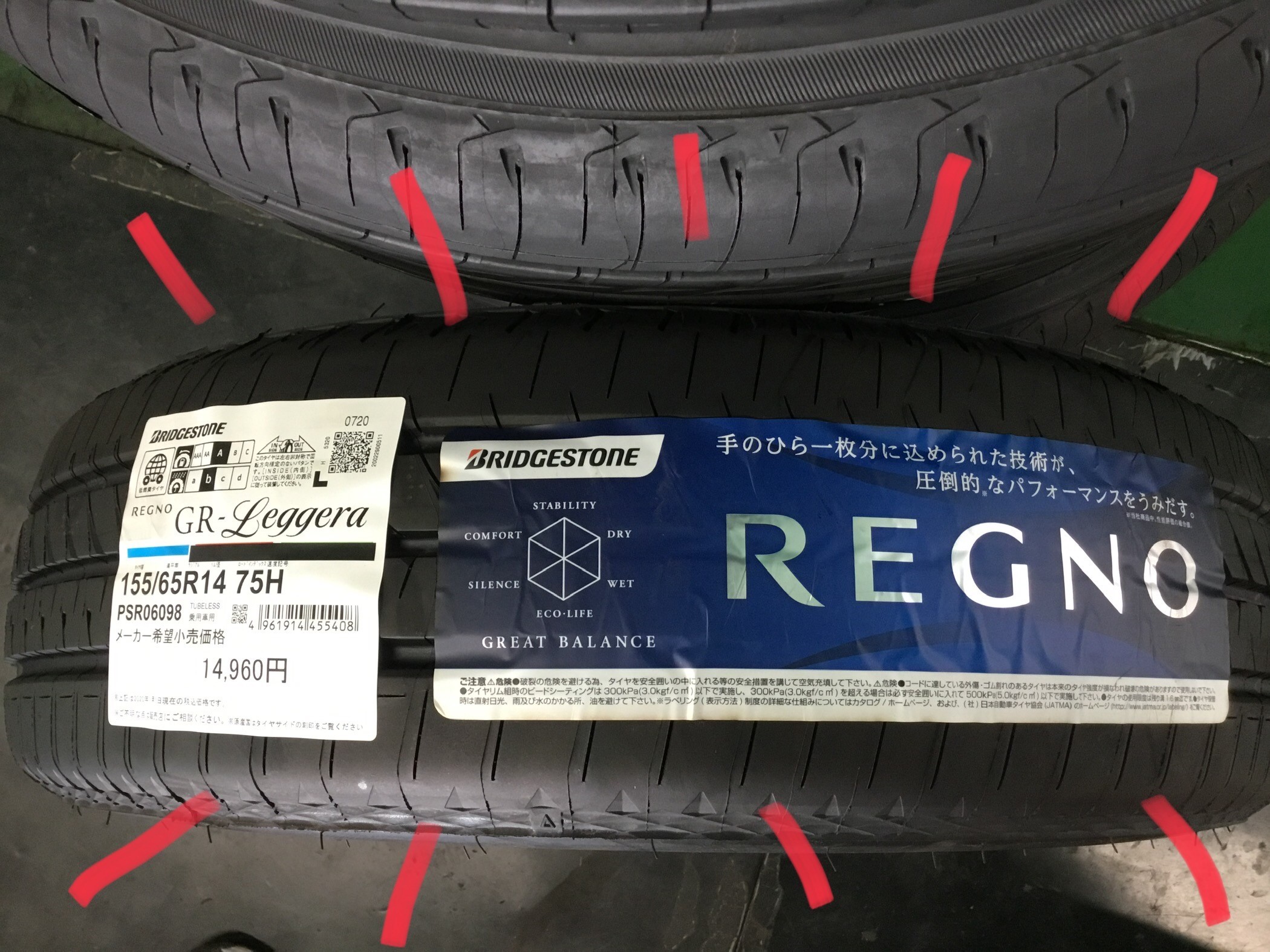 新しくお取り付けるタイヤ 155/65R14!